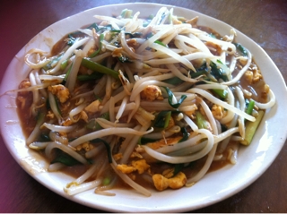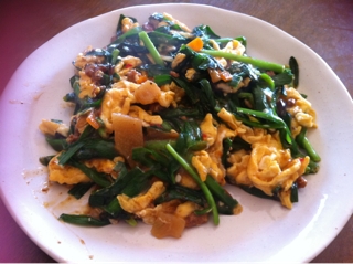 長ネギ、もやし、ニラ、卵で味噌炒めです。