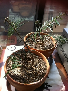 透明の容器に入っているトマトジュースのようなものは、辰砂、ダンマルガム、テレピン油で作った2層目にニスです。左の2つは松の端材、右2つはタブの端材のようです。すべて、あらかじめ、コーパルニスを塗装してあります。それぞれ、辰砂の量や質を変えて塗ったり、磨き方を変えたりして研究実験してくれたようです。