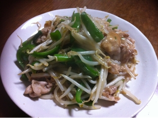 モヤシ、ピーマン、豚肉の塩炒めです。